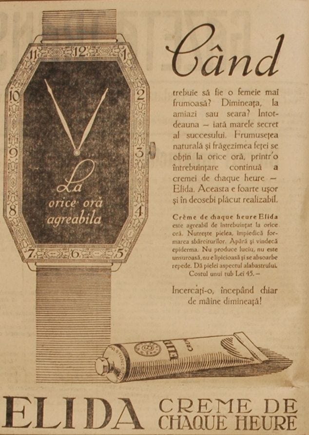 O reclamă pentru doamne, din Gazeta de Transilvania din 1929. La prima vedere ar fi o reclamă pentru ceasuri, dar iată că încă de acum 100 de ani creativitatea “publicitarilor” era la cote înalte.